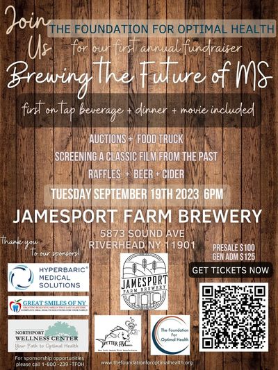 Long Island, NY September 21, 2023 — The Foundation for Optimal Health, a 501(c)3 non-profit organization dedicated to providing comprehensive support and access to complimentary, life enhancing therapies to individuals living with Multiple Sclerosis (MS), is delighted to announce the triumphant outcome of its first annual "Dinner and a Movie" fundraising event. This remarkable evening of hope and entertainment was held on September 19th, 2023, at the picturesque Jamesport Farm Brewery, drawing in supporters from all corners of the community.